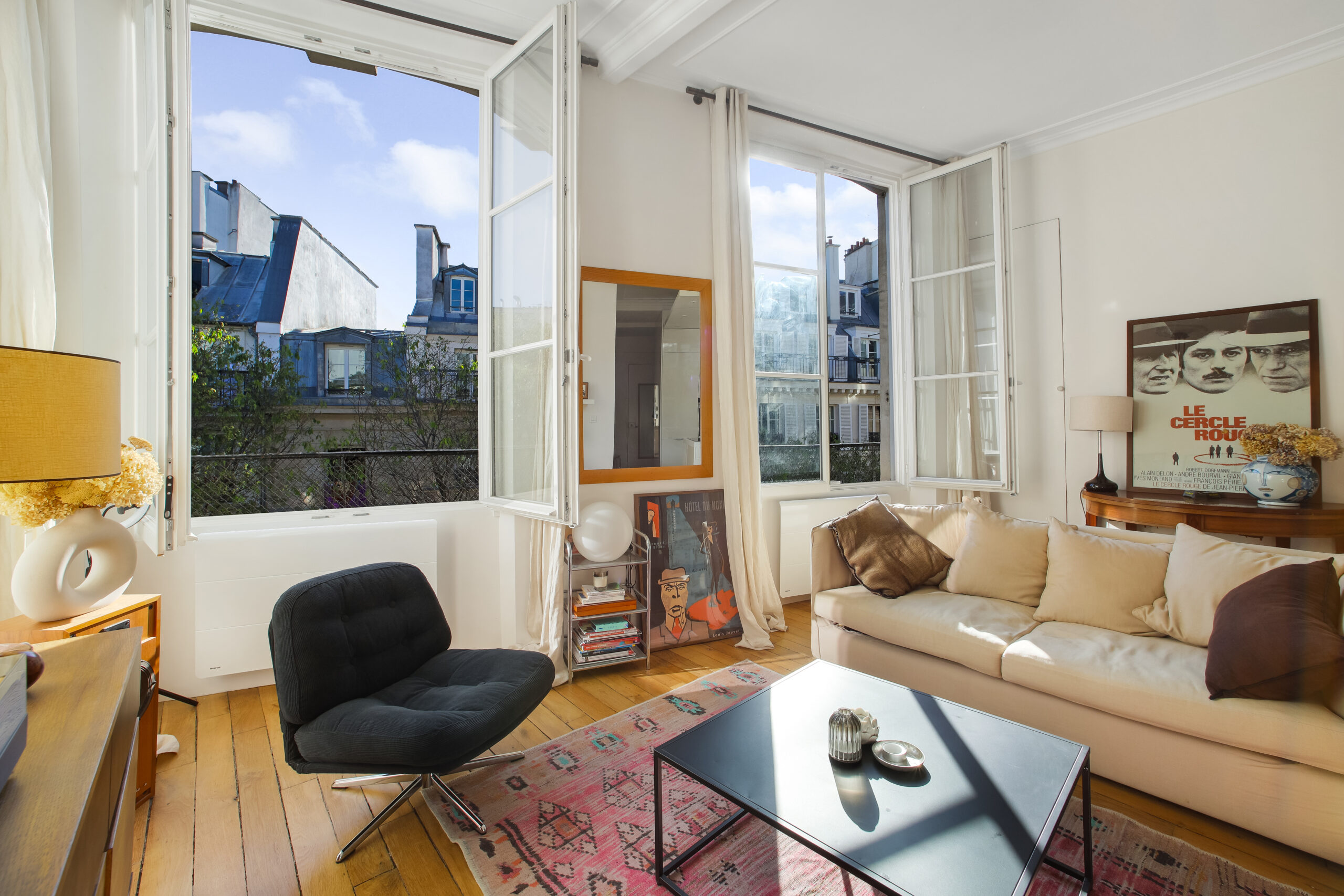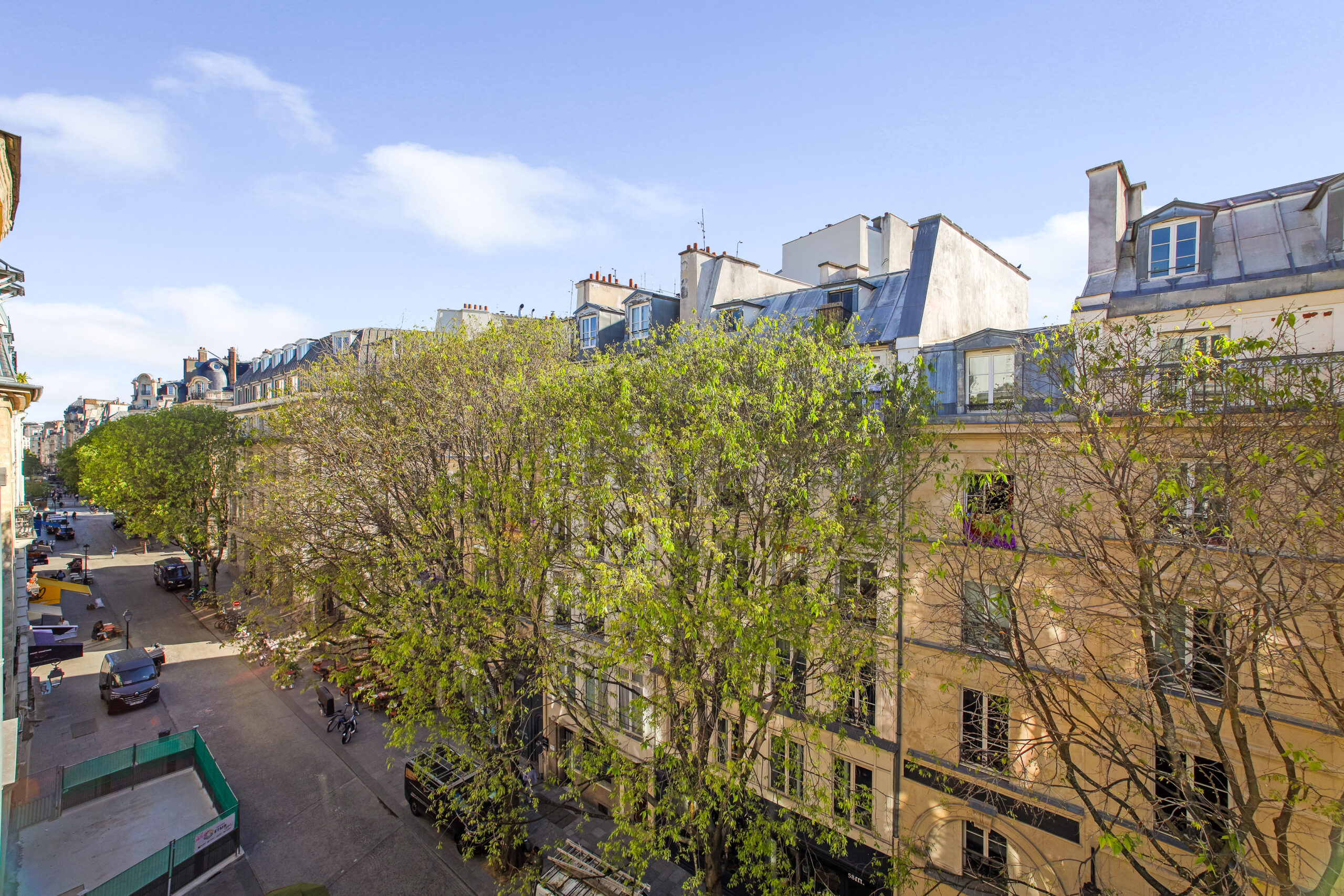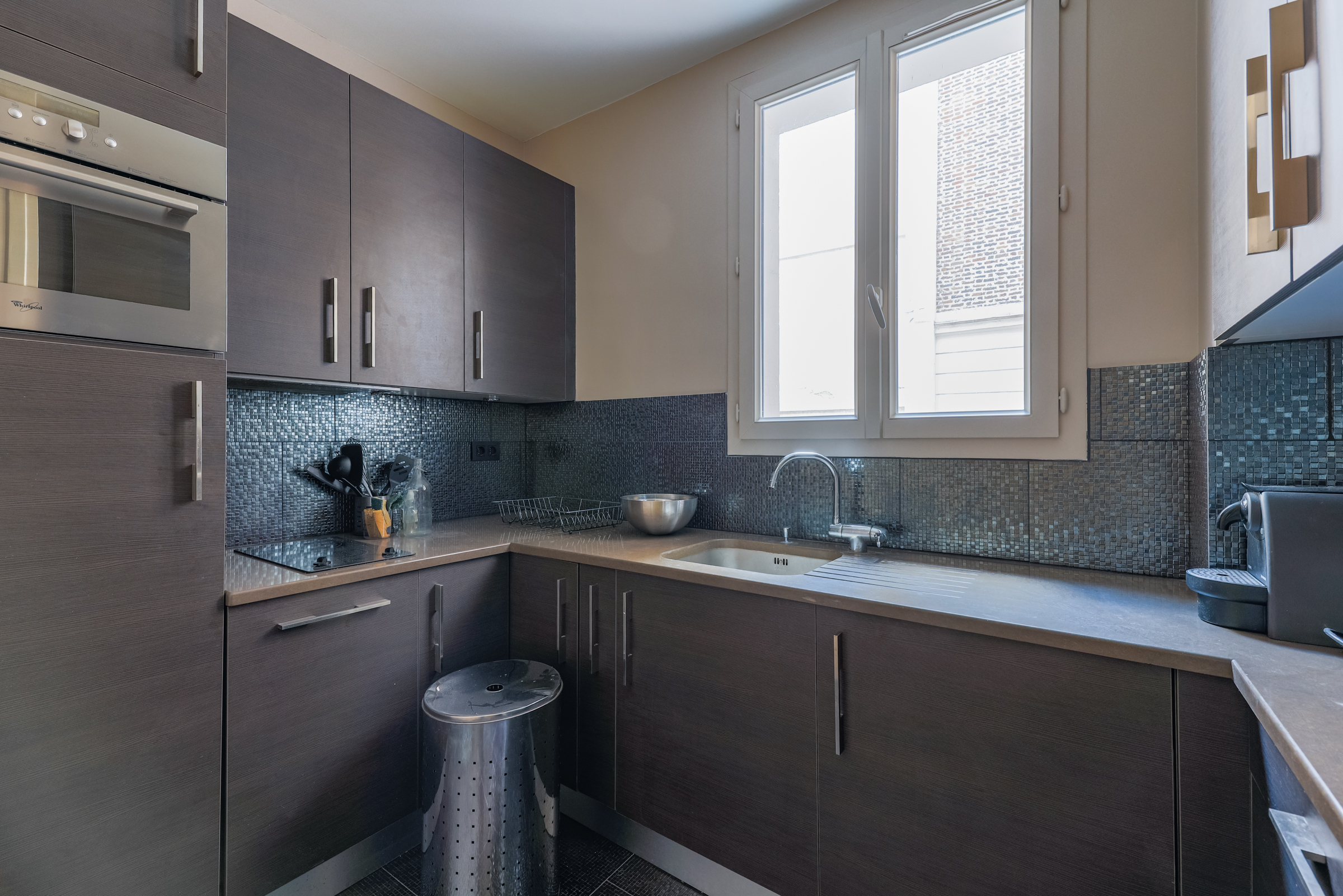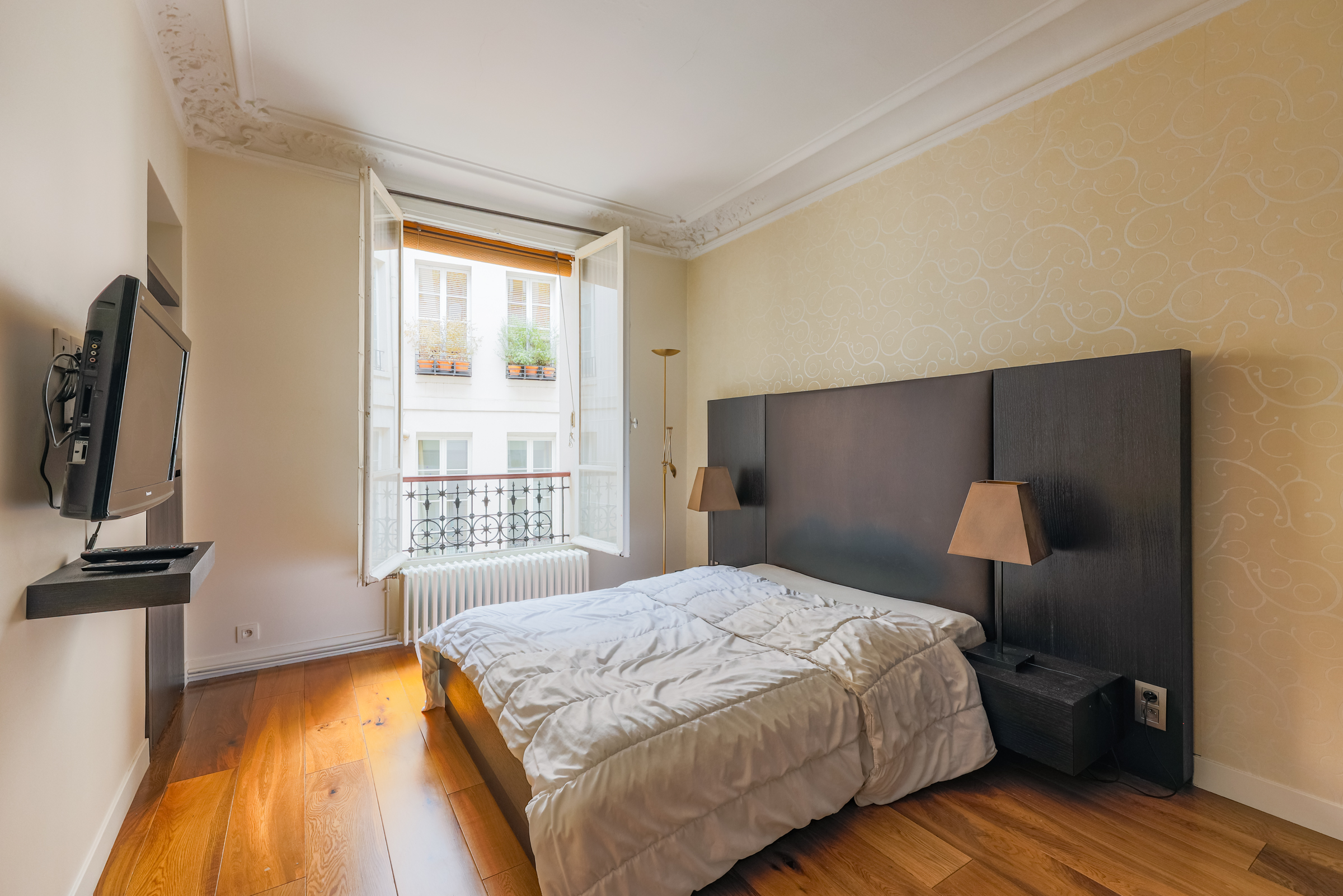 Très calme, il donne sur deux cours intérieures, ce qui lui confère une atmosphère paisible, rare en plein centre de Paris. Les finitions sont soignées et l’agencement bien pensé.