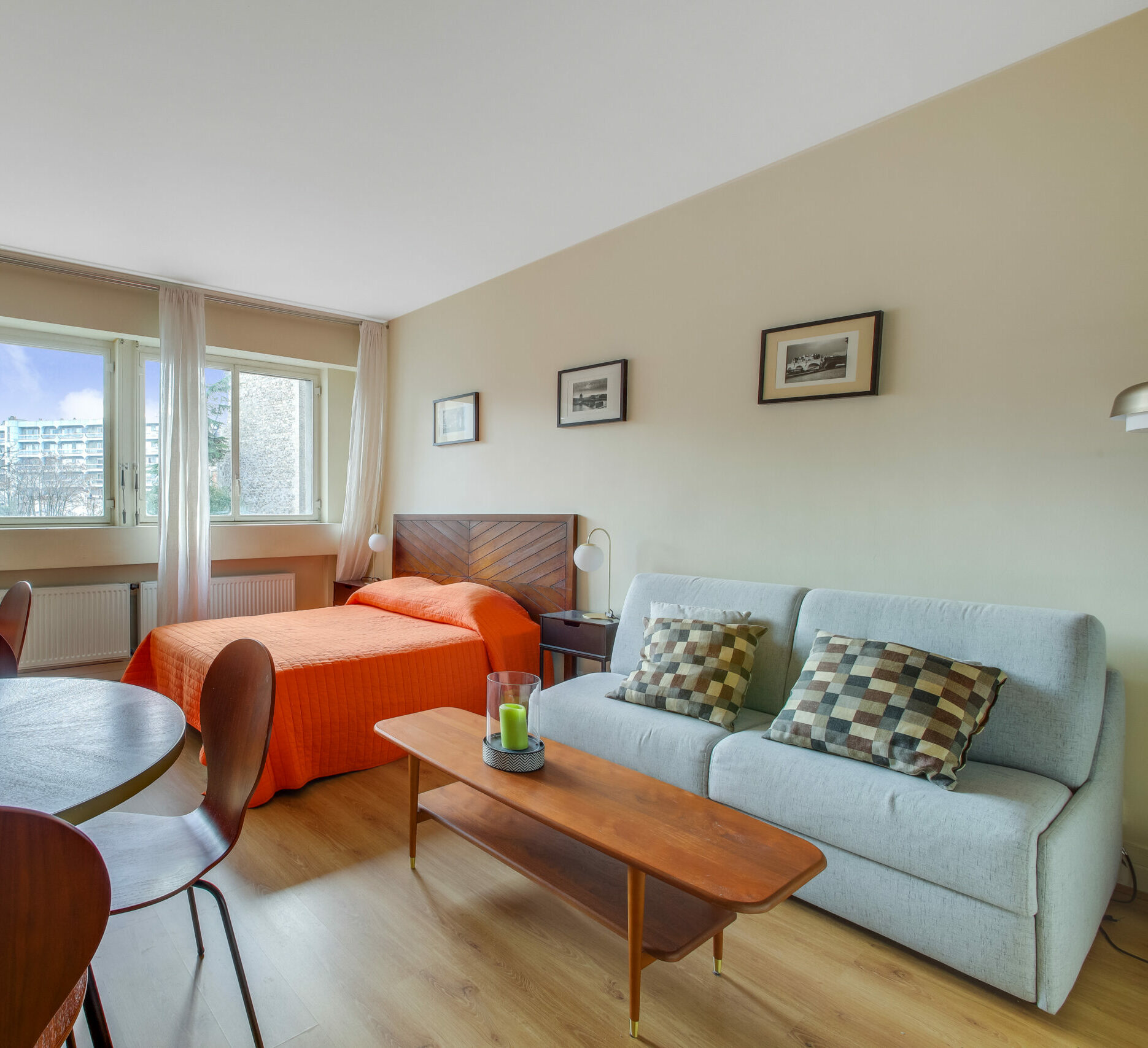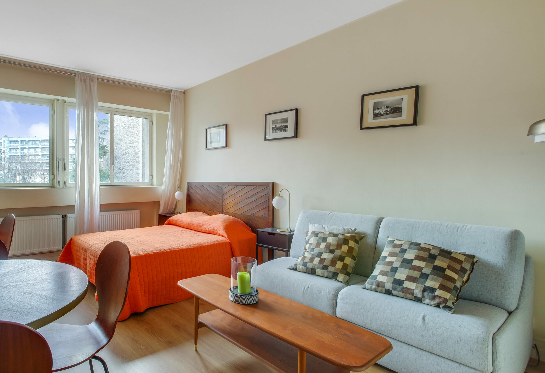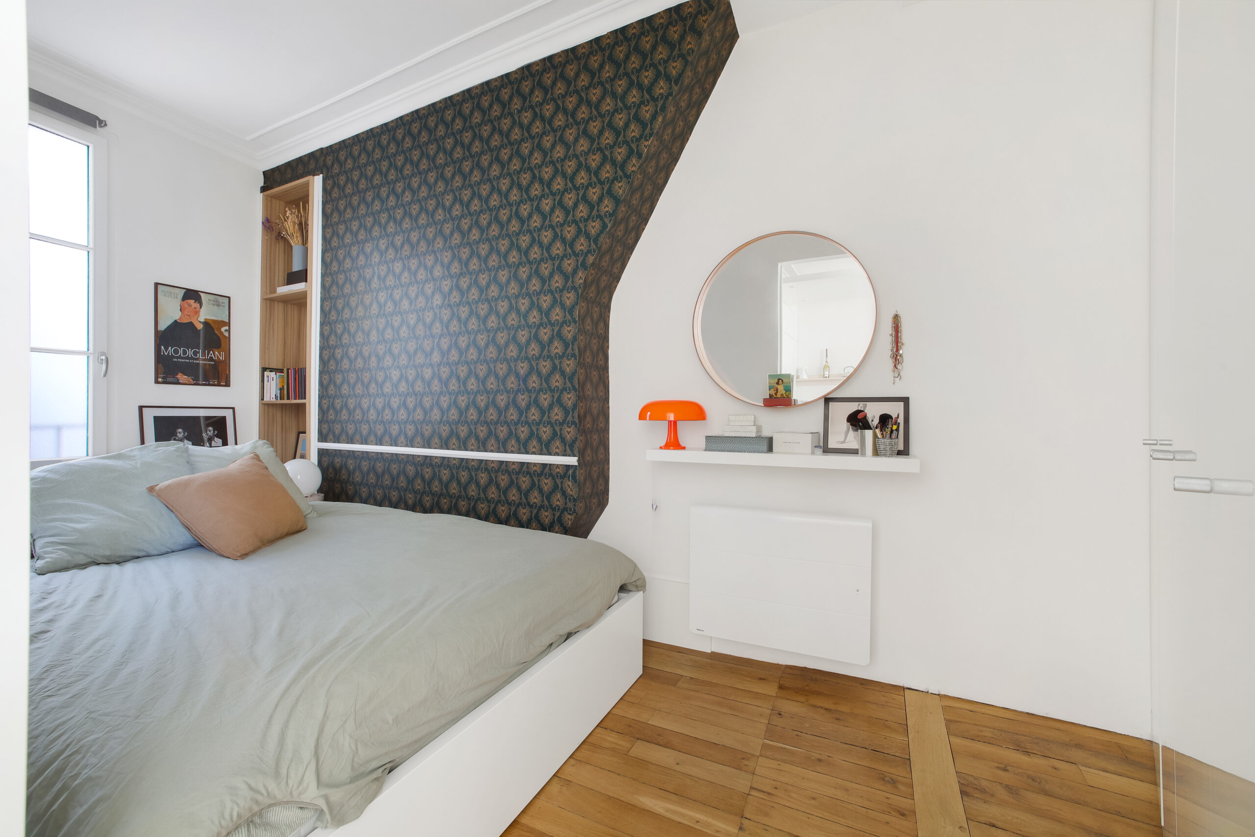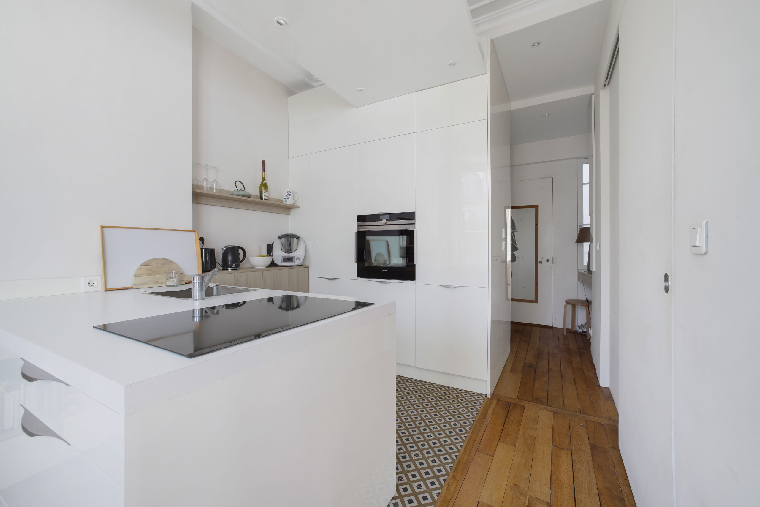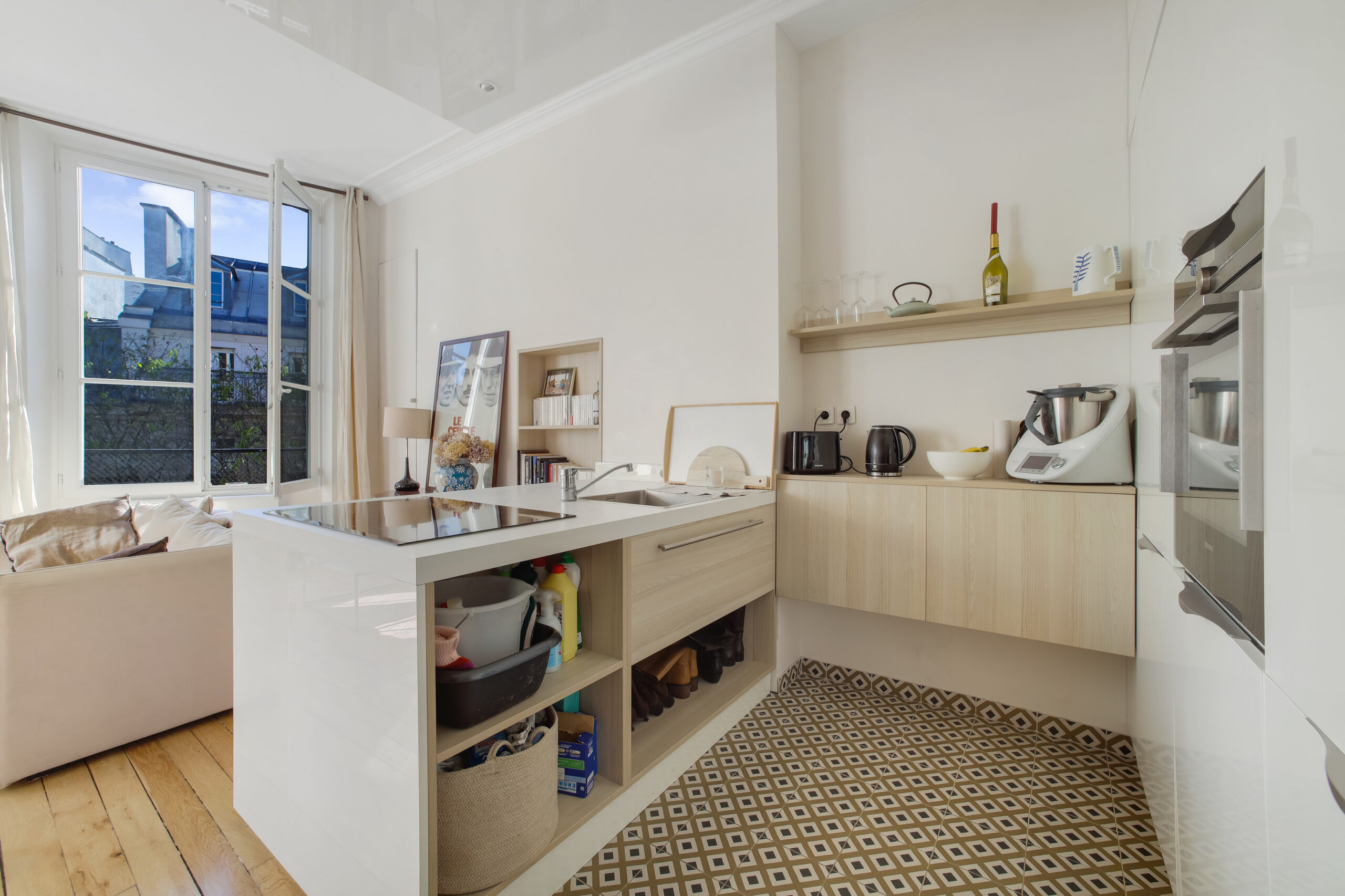Très calme, il donne sur deux cours intérieures, ce qui lui confère une atmosphère paisible, rare en plein centre de Paris. Les finitions sont soignées et l’agencement bien pensé.